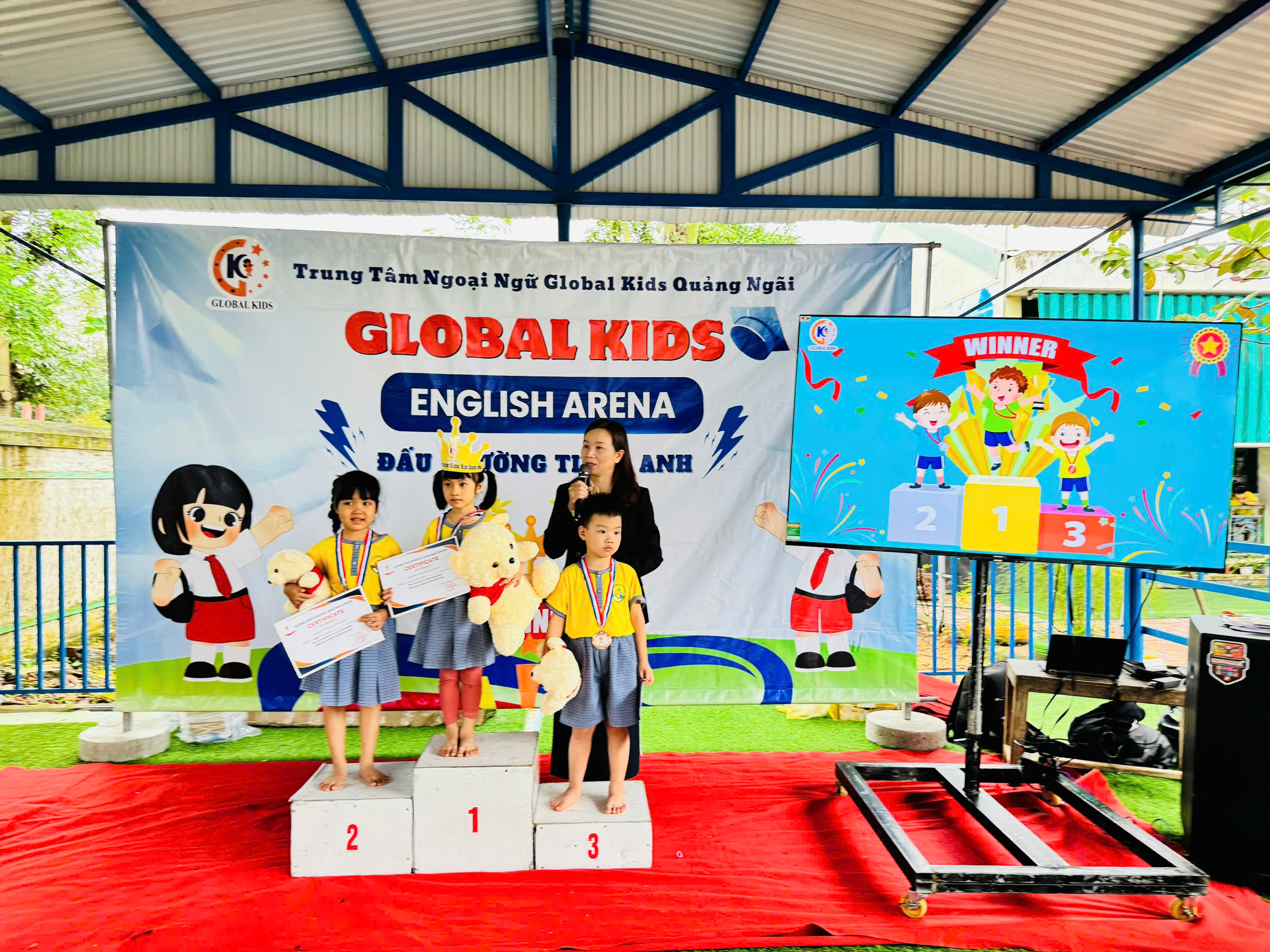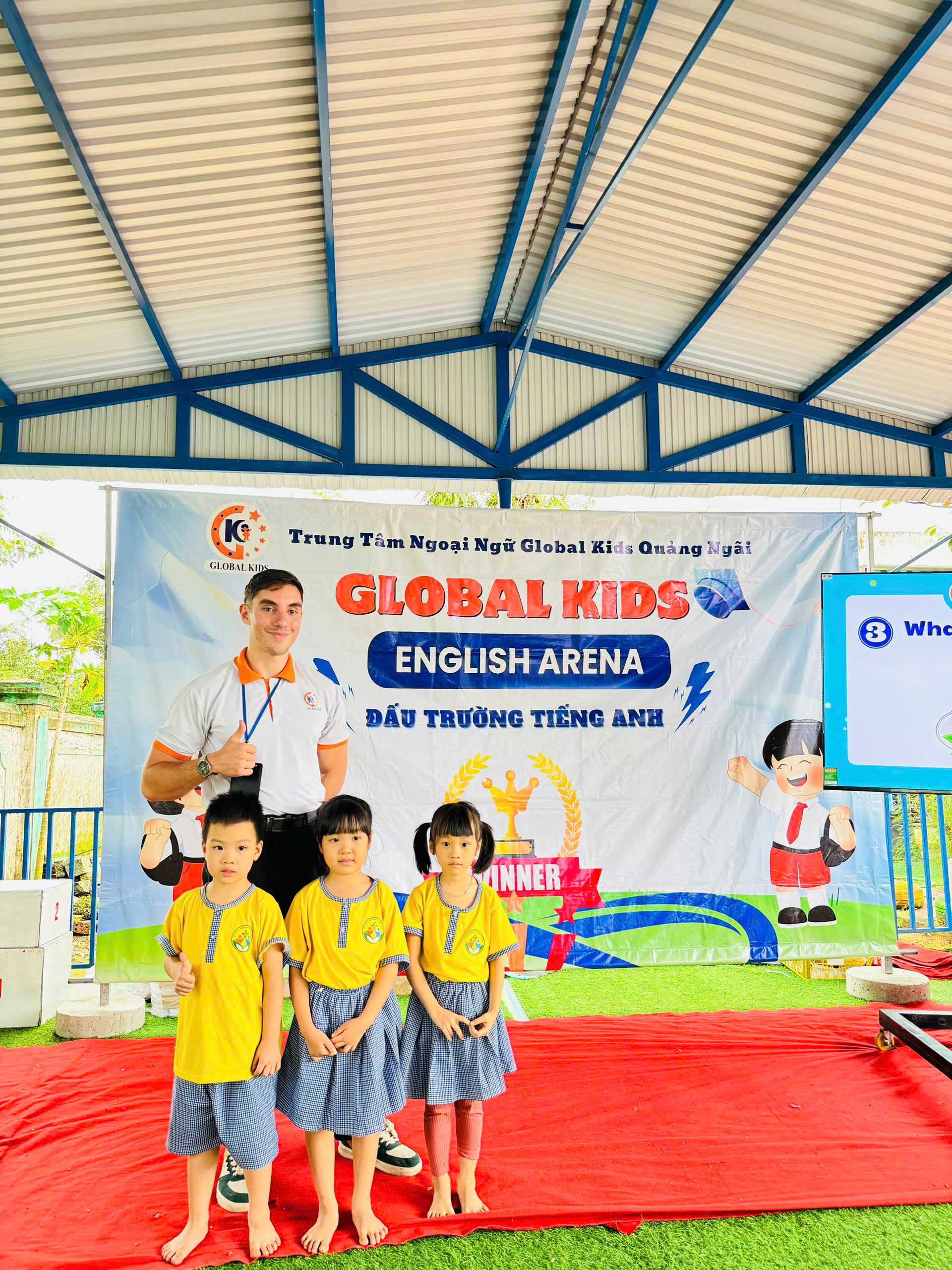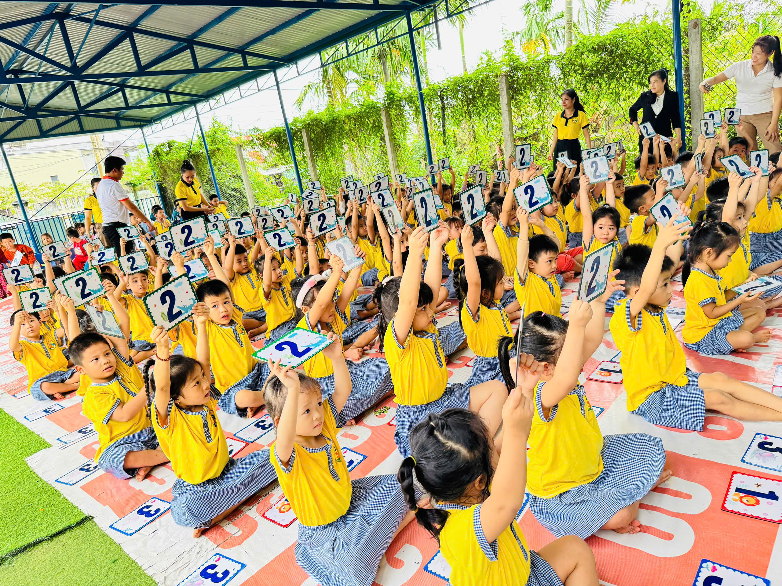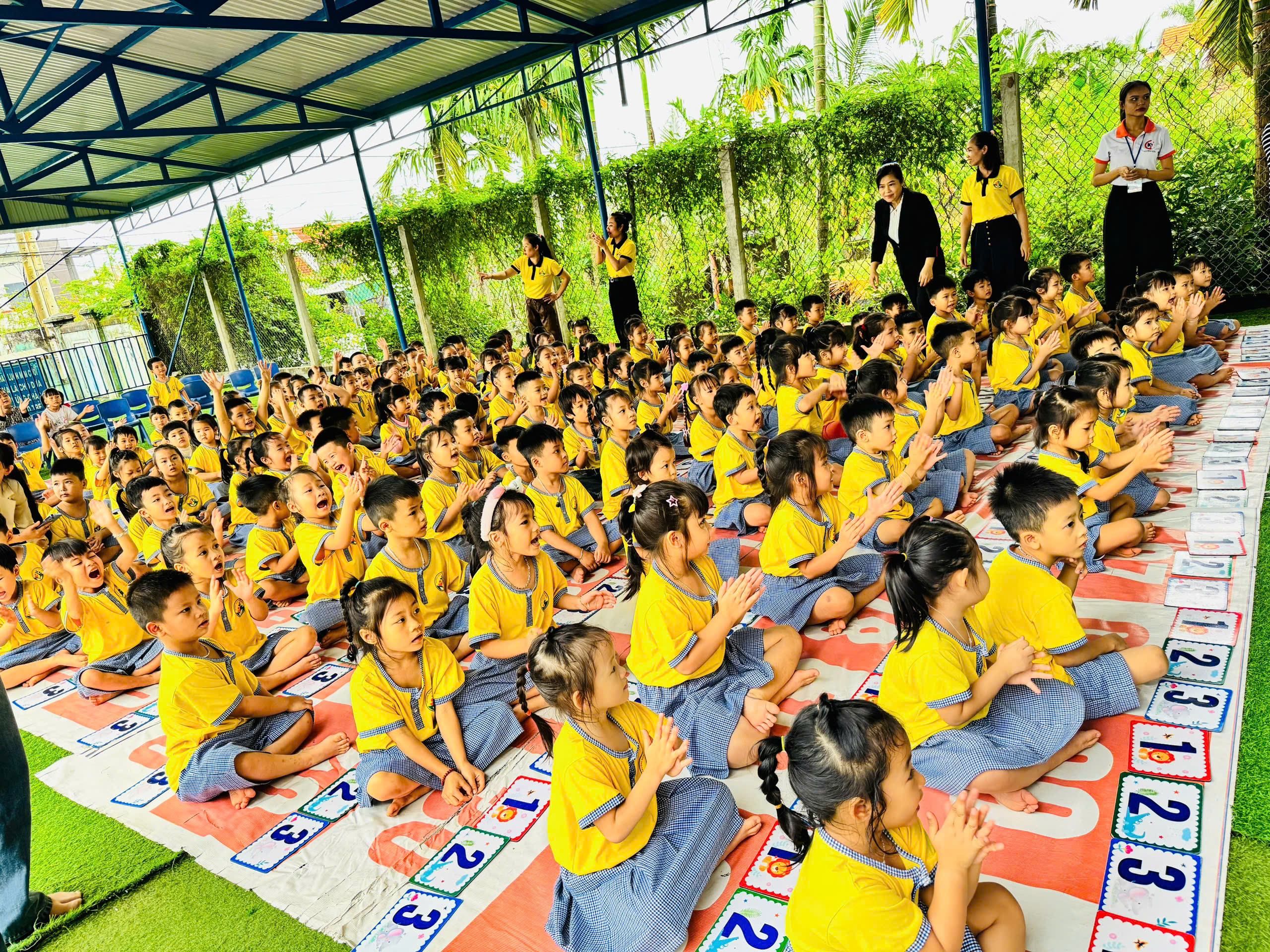 Ngay từ những phút đầu tiên, không khí đã trở nên thật náo nhiệt! Các bé hào hứng tham gia, mạnh dạn thể hiện khả năng tiếng Anh của mình trước thầy cô, bạn bè và ba mẹ. Những đôi mắt sáng long lanh, những tiếng cười giòn tan và những cái tay giơ lên thật cao chính là minh chứng cho sự tự tin và niềm vui mà các bé nhận được qua sân chơi này.