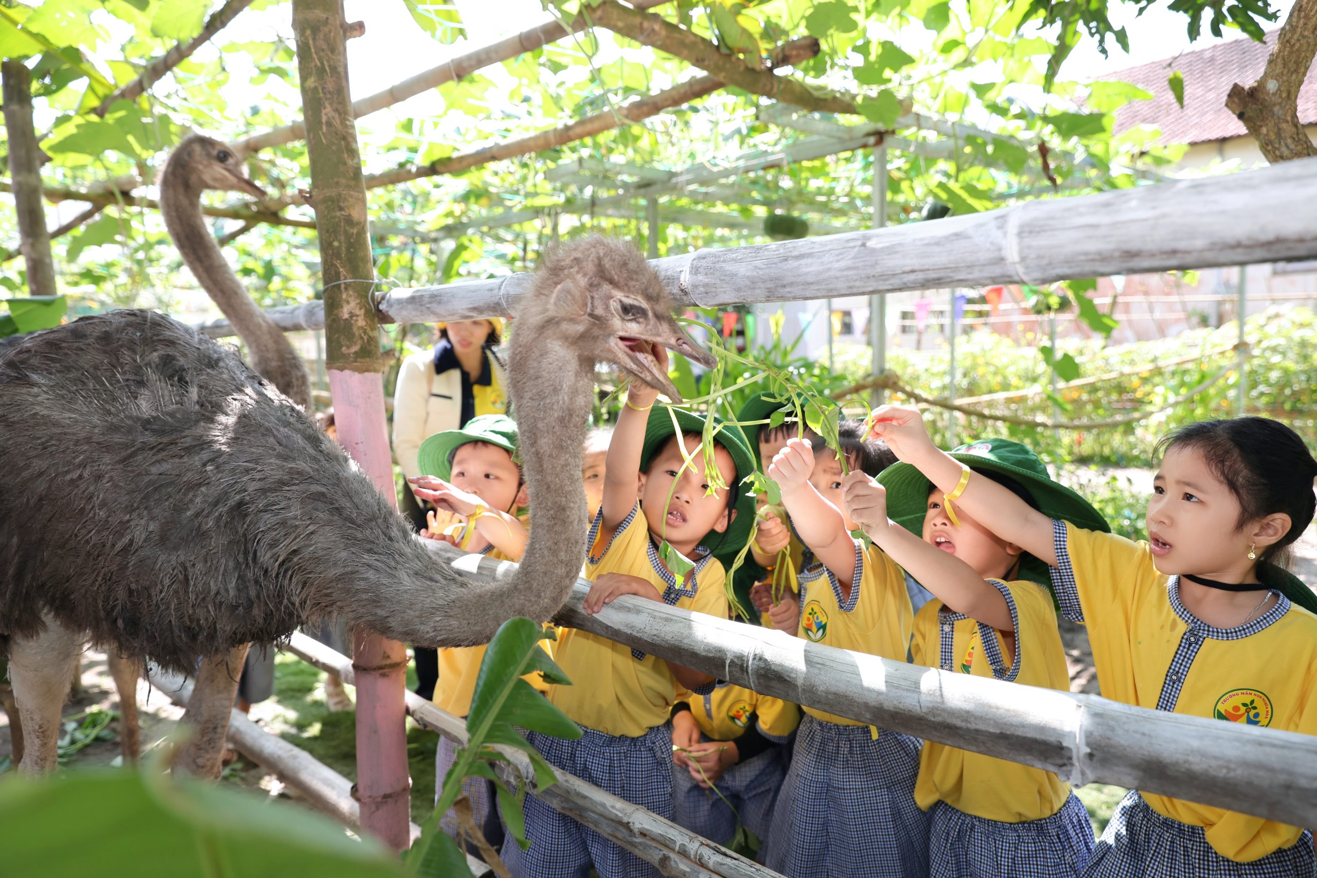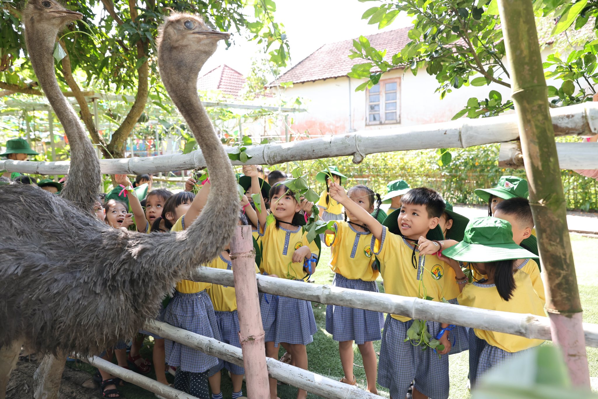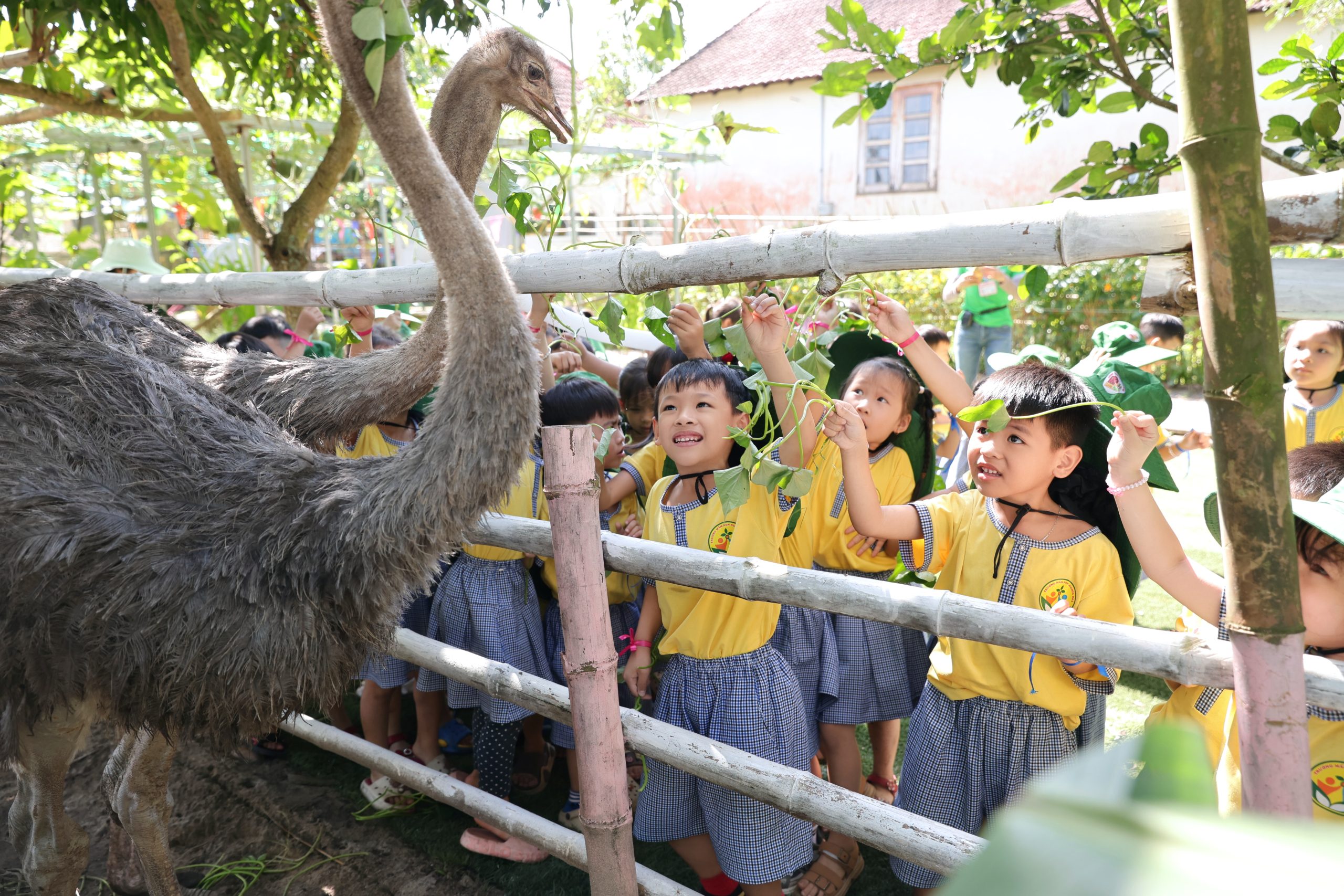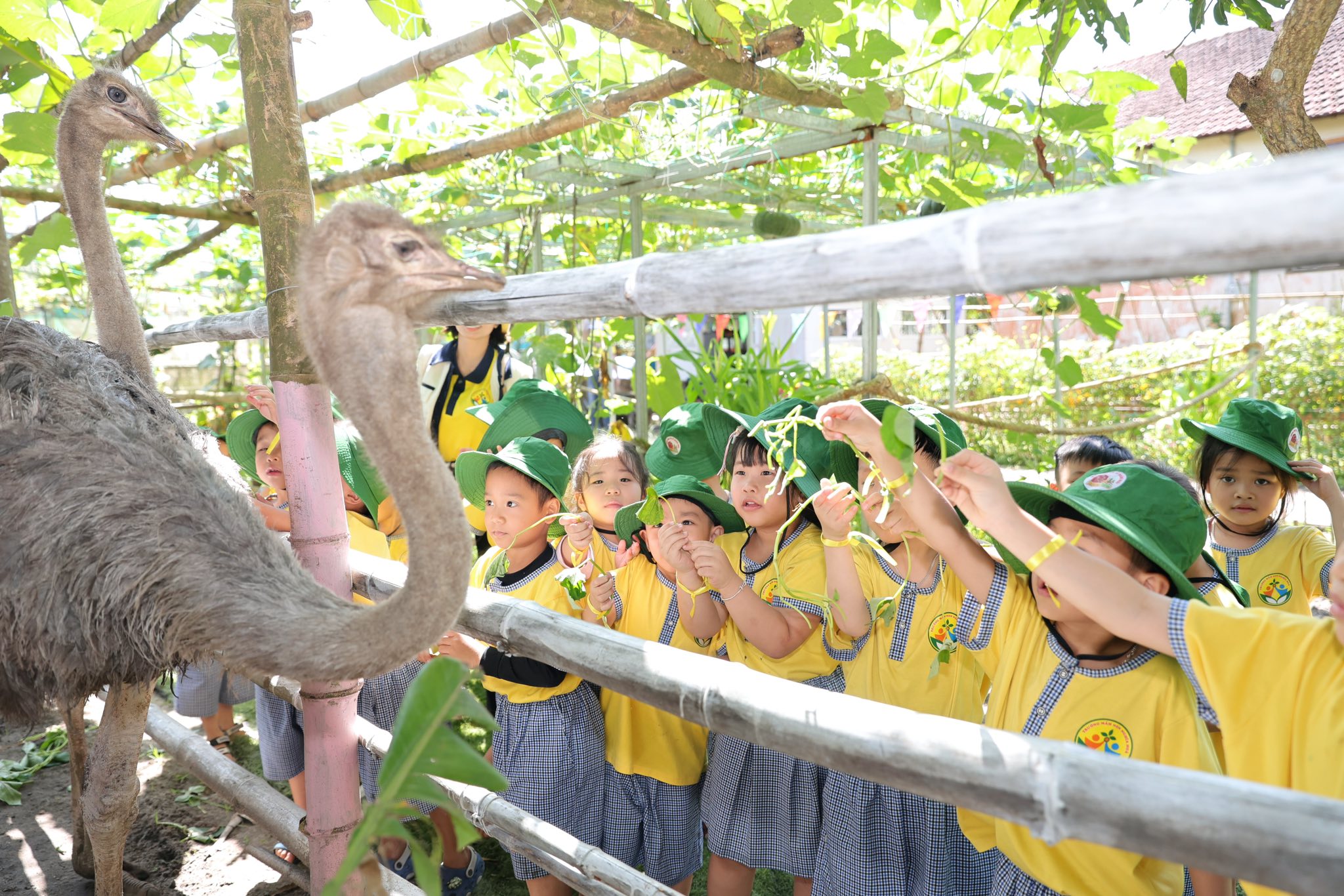Tại trang trại, các bé vô cùng thích thú khi được hòa mình vào không gian xanh mát, trong lành của đồng quê. Các con được trực tiếp cho các con vật như thỏ, cừu, đà điểu ăn, quan sát và tìm hiểu về đặc điểm cũng như thói quen sinh hoạt của chúng. Những trải nghiệm gần gũi này đã mang đến cho trẻ nhiều niềm vui và sự hào hứng.