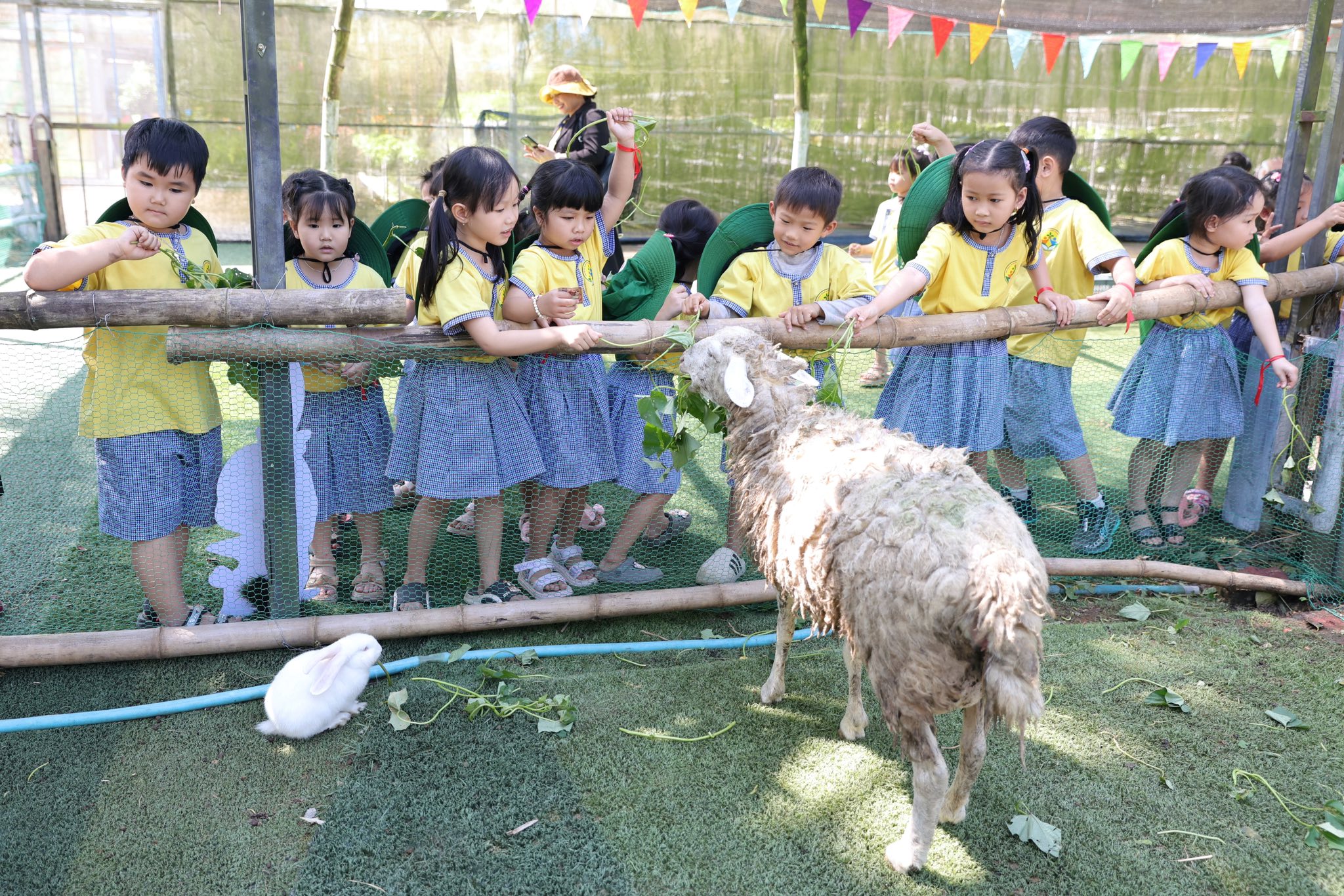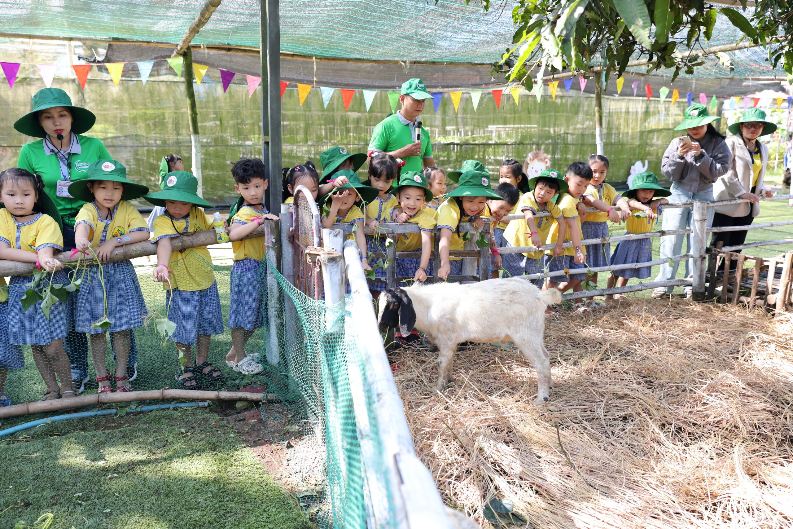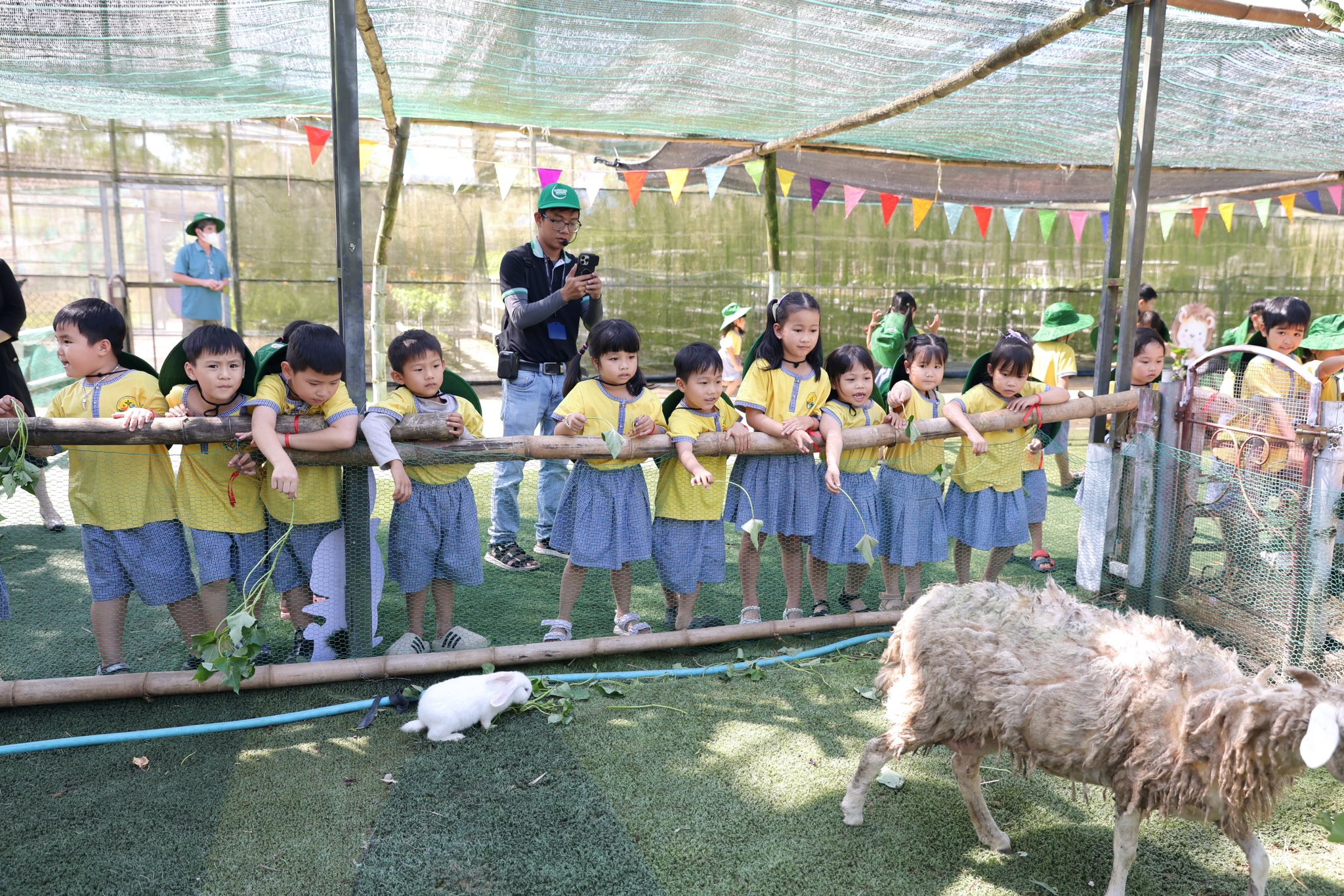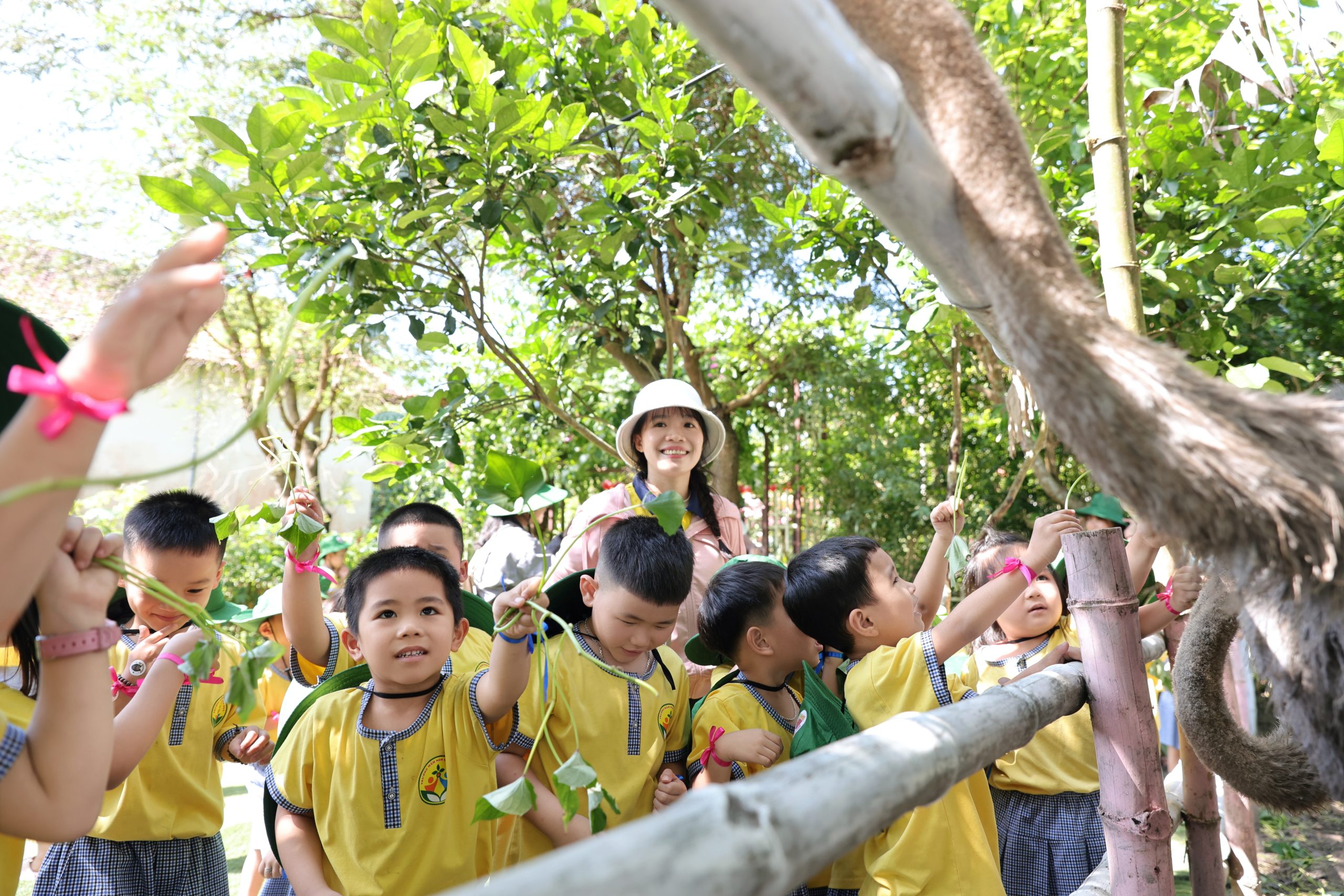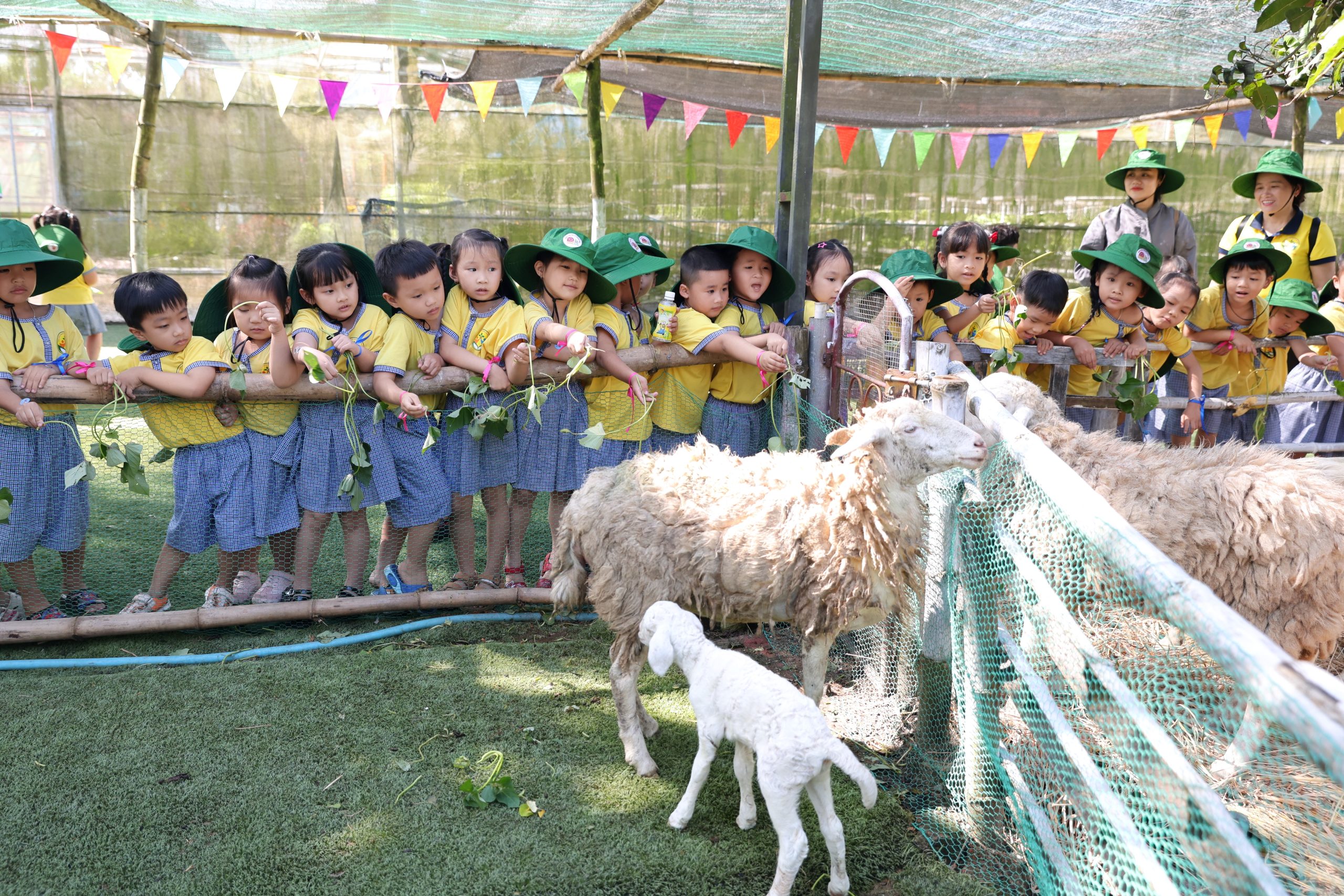 Tại trang trại, các bé vô cùng thích thú khi được hòa mình vào không gian xanh mát, trong lành của đồng quê. Các con được trực tiếp cho các con vật như thỏ, cừu, đà điểu ăn, quan sát và tìm hiểu về đặc điểm cũng như thói quen sinh hoạt của chúng. Những trải nghiệm gần gũi này đã mang đến cho trẻ nhiều niềm vui và sự hào hứng.