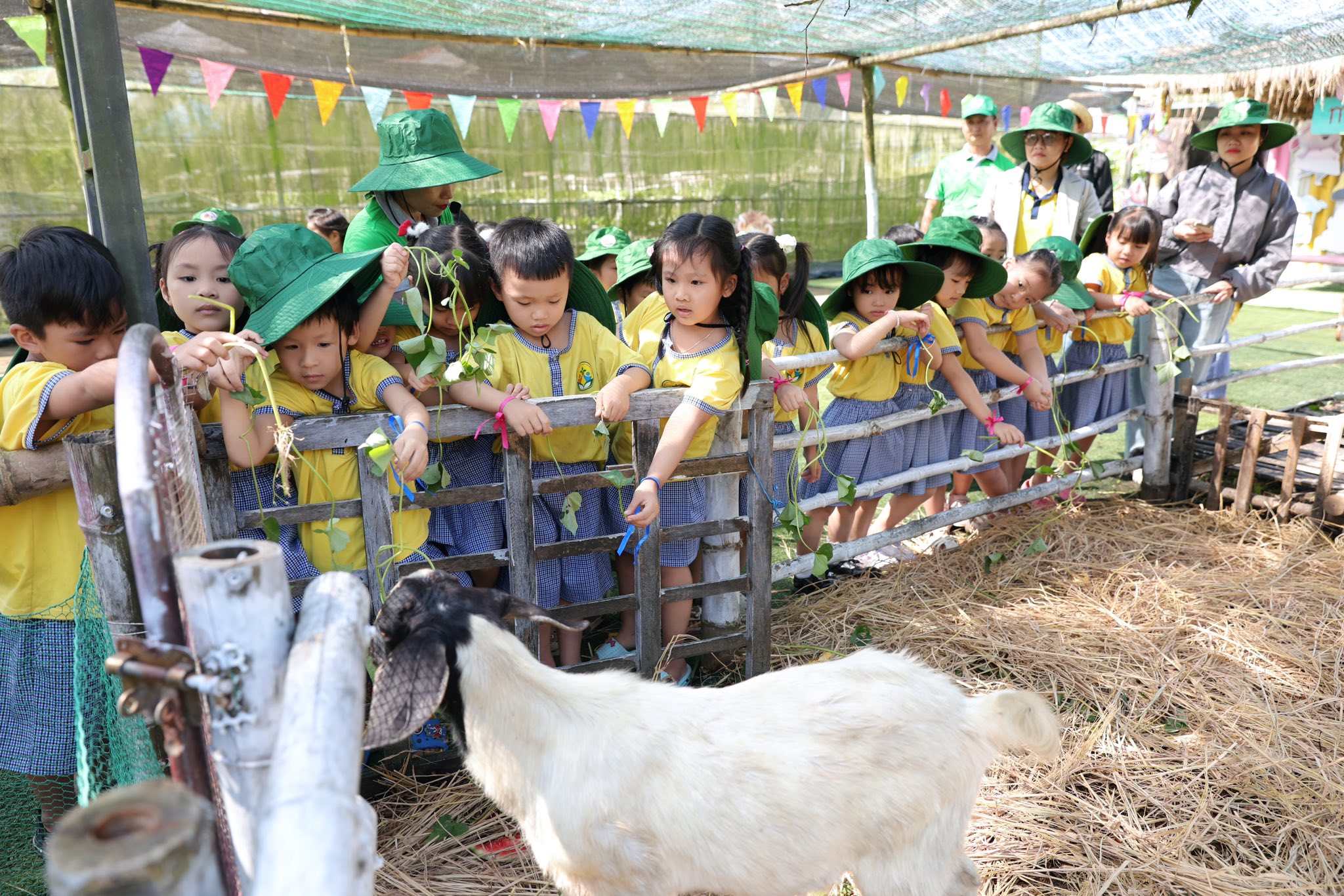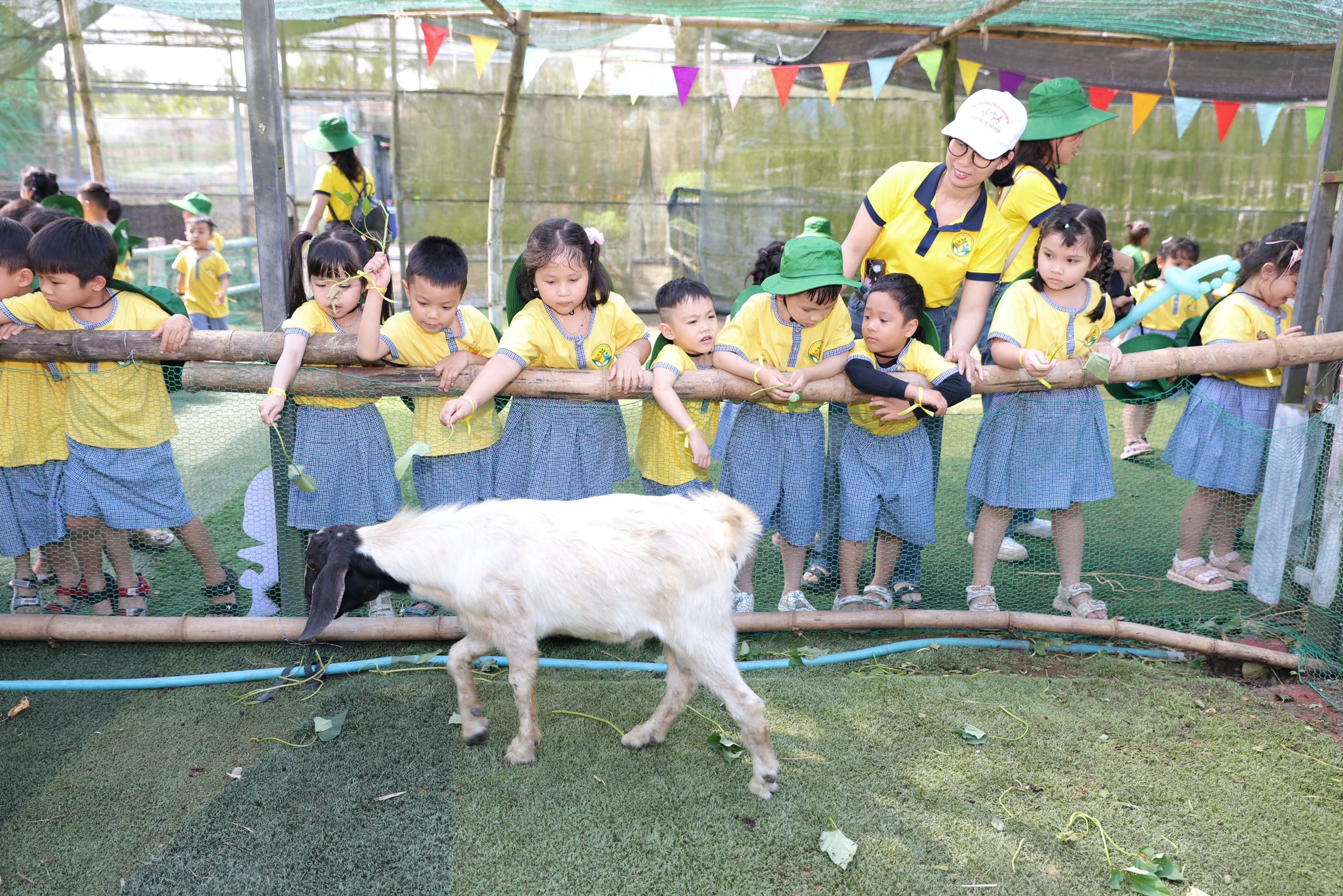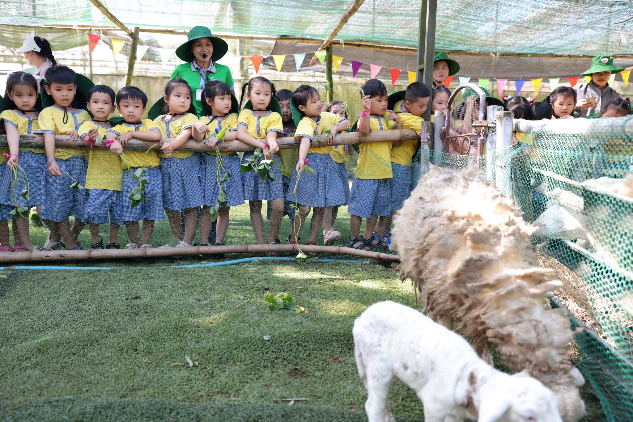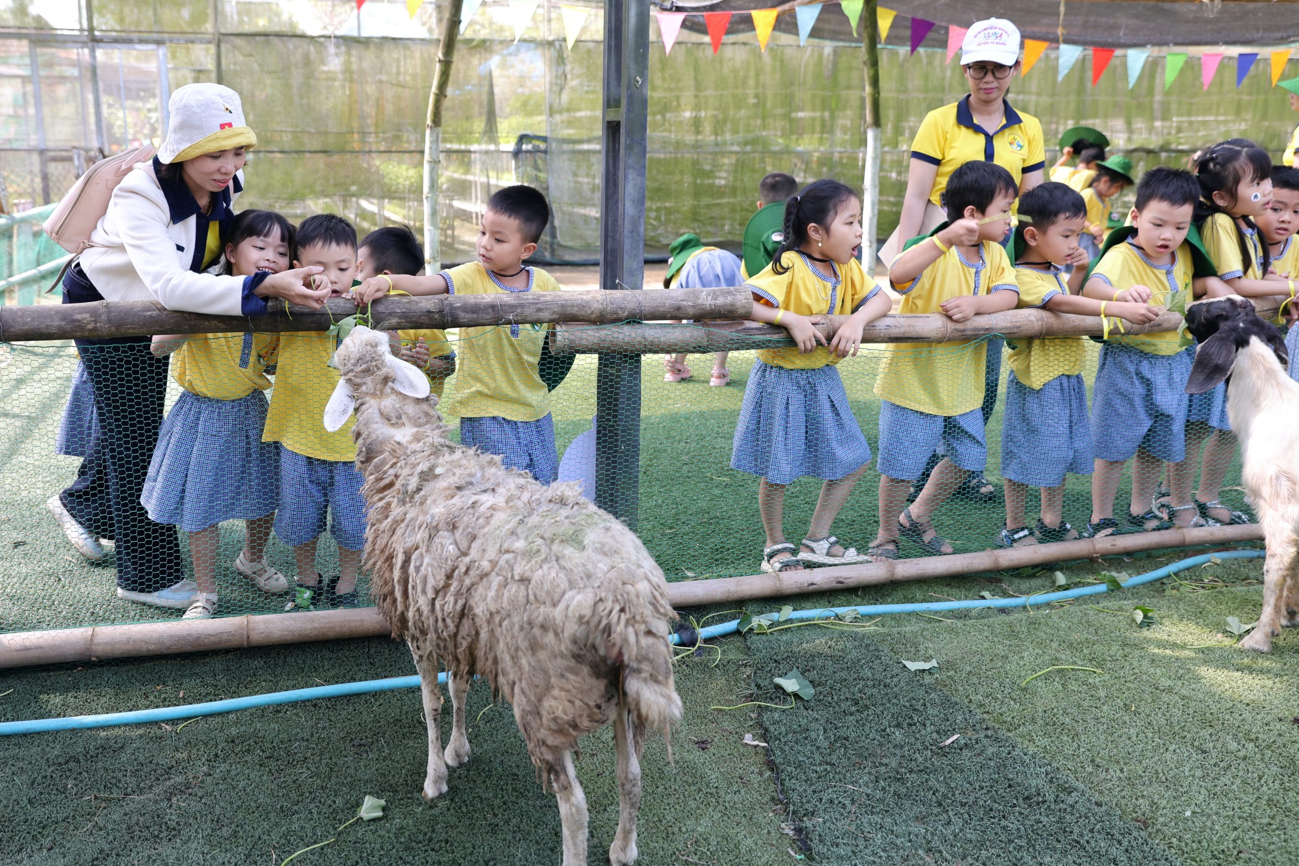 Tại trang trại, các bé vô cùng thích thú khi được hòa mình vào không gian xanh mát, trong lành của đồng quê. Các con được trực tiếp cho các con vật như thỏ, cừu, đà điểu ăn, quan sát và tìm hiểu về đặc điểm cũng như thói quen sinh hoạt của chúng. Những trải nghiệm gần gũi này đã mang đến cho trẻ nhiều niềm vui và sự hào hứng.