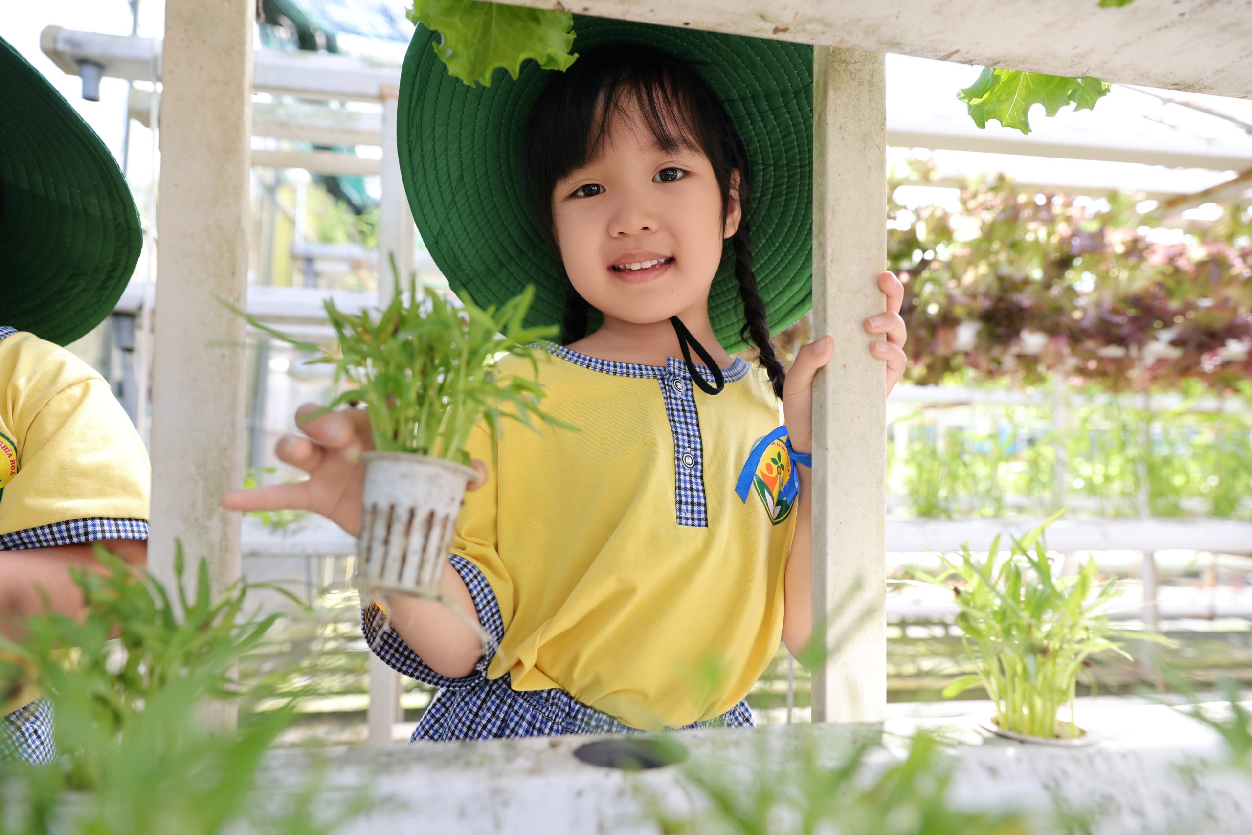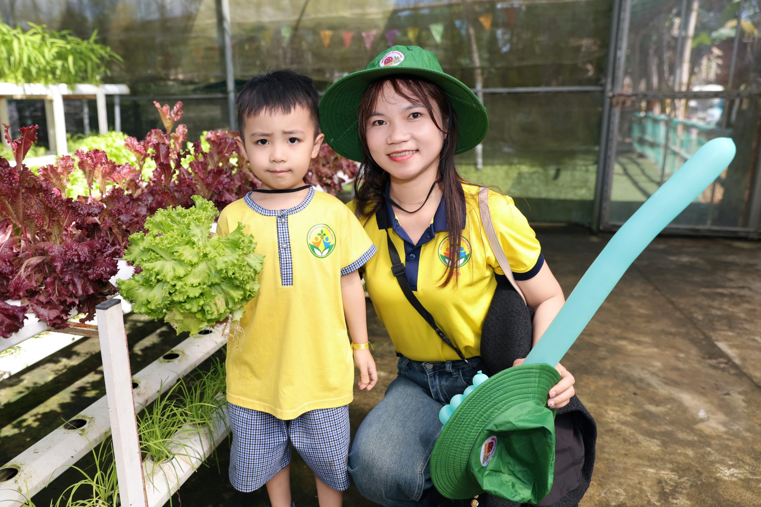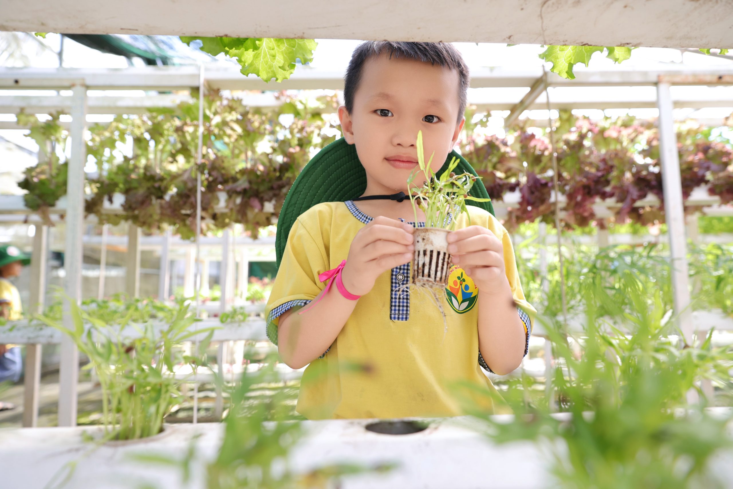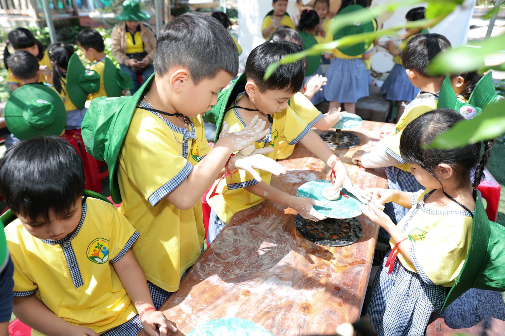 Bên cạnh đó, các bé còn được tham gia nhiều hoạt động trải nghiệm thú vị như làm bánh xèo, tráng bánh tráng, tham quan vườn nấm và vườn rau thủy canh. Thông qua những hoạt động này, trẻ không chỉ được khám phá những điều mới mẻ mà còn hiểu thêm về quy trình làm ra các sản phẩm quen thuộc trong cuộc sống hằng ngày.