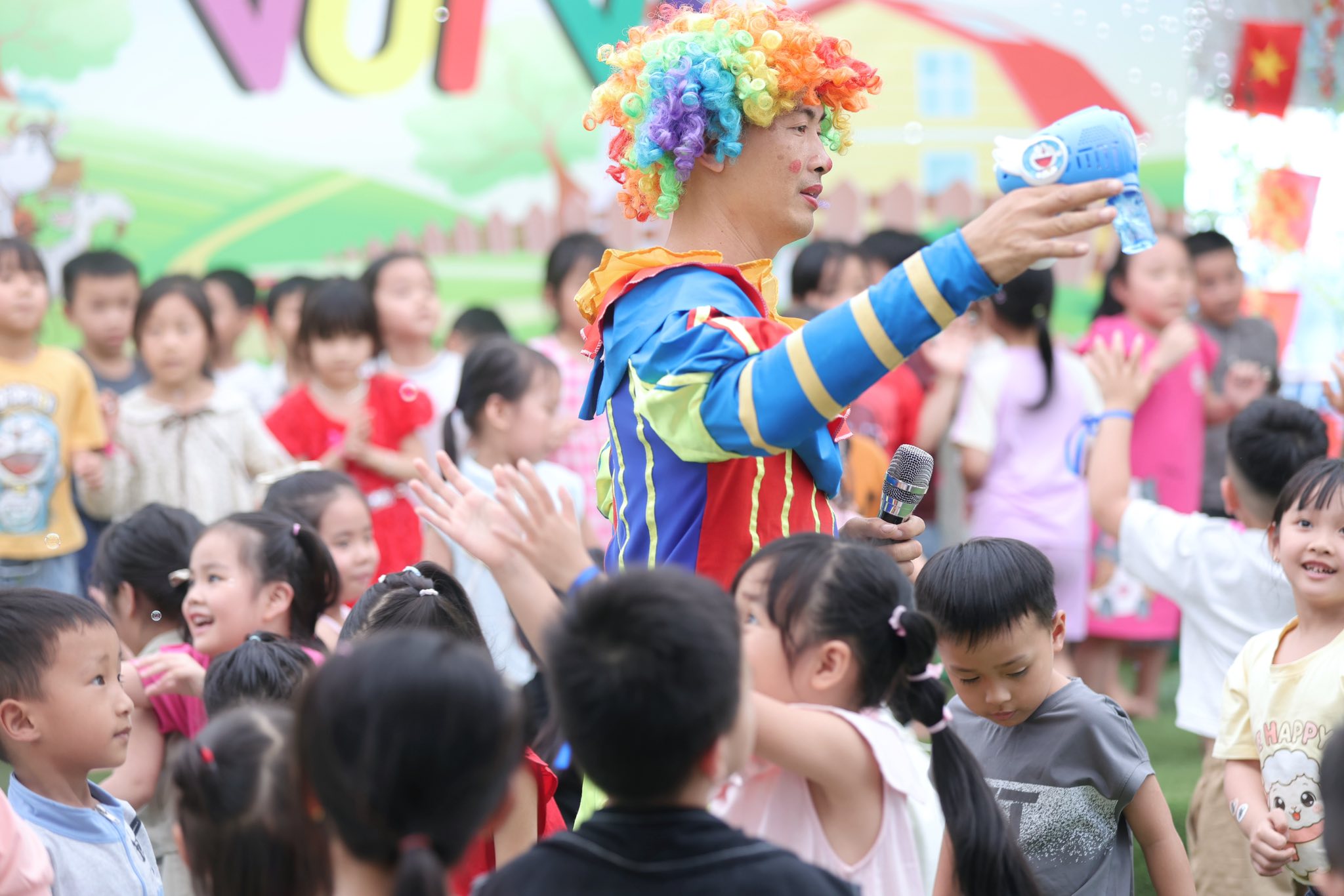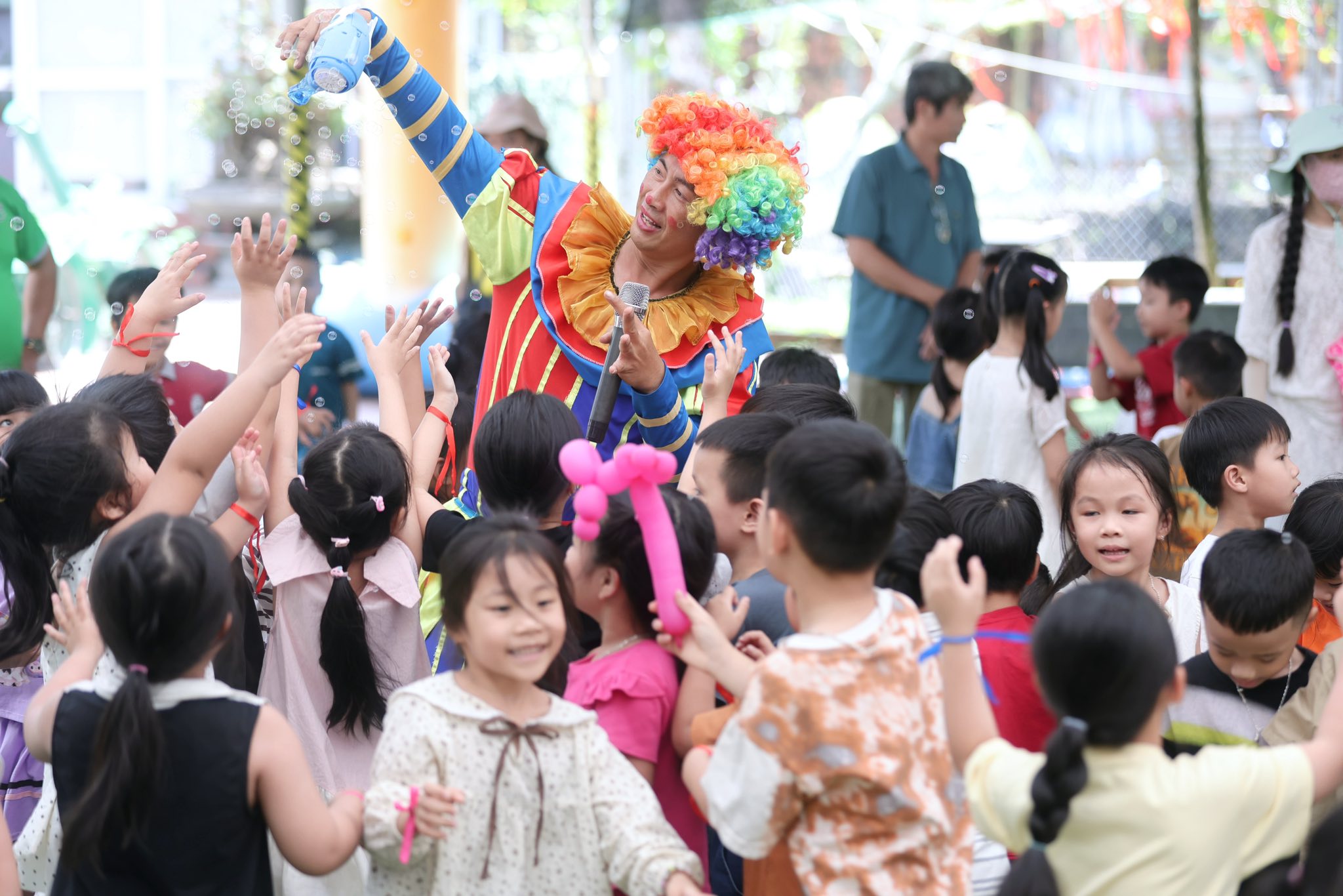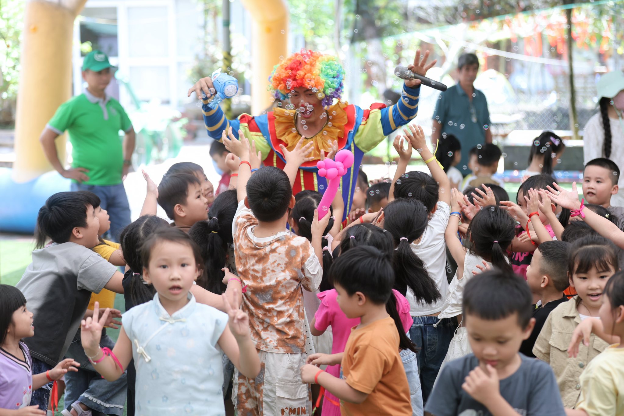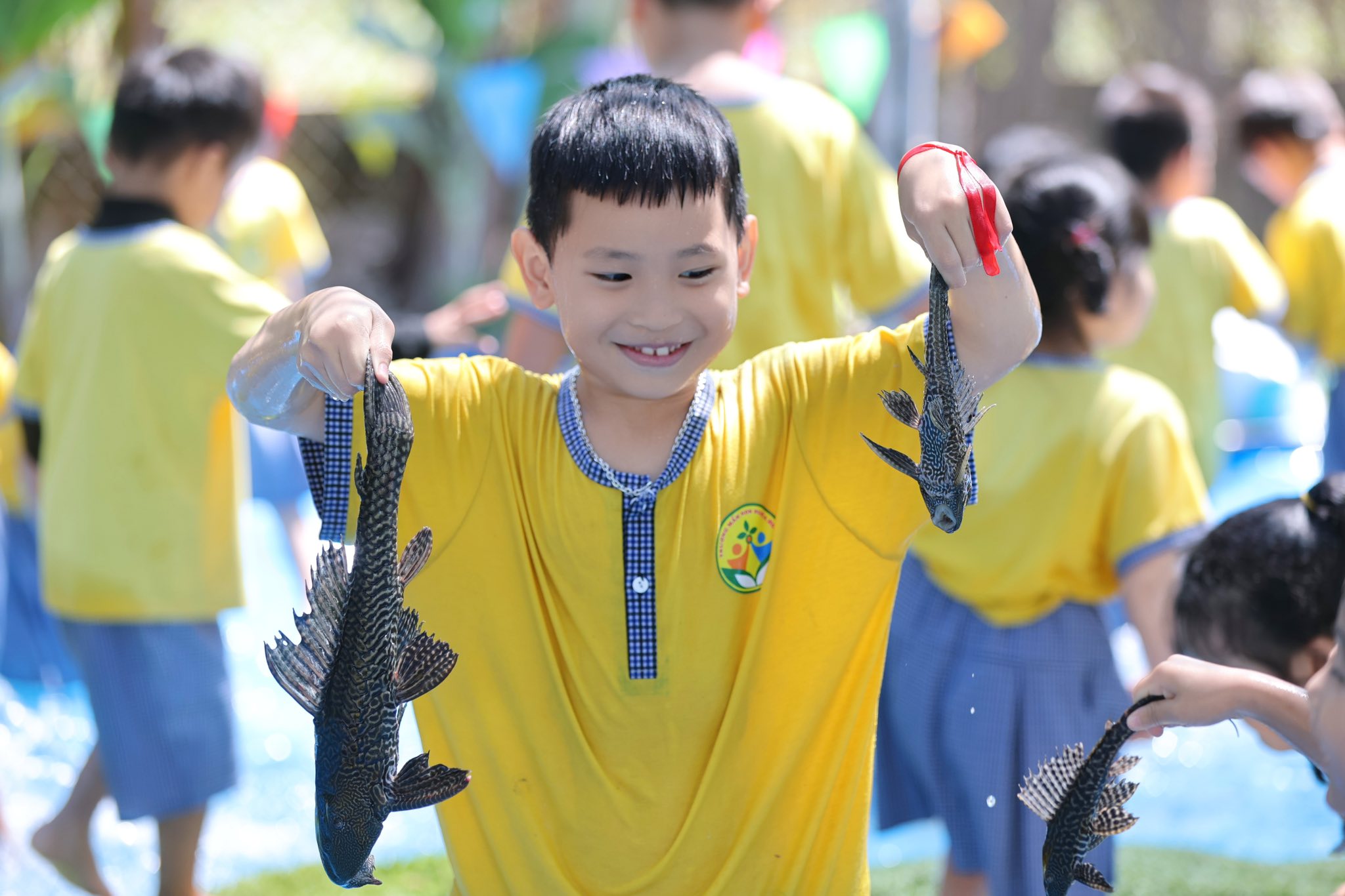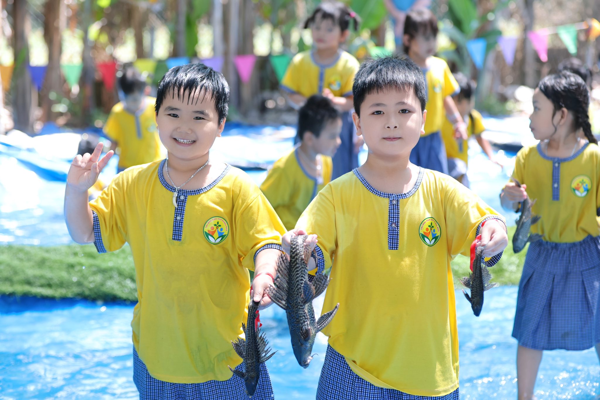 Đặc biệt, các trò chơi dân gian như bịt mắt bắt vịt, bắt cá… đã mang lại bầu không khí sôi động với những tiếng cười giòn tan và những khoảnh khắc thật đáng nhớ. Các bé đã có cơ hội vận động, vui chơi tập thể và gắn kết với bạn bè.