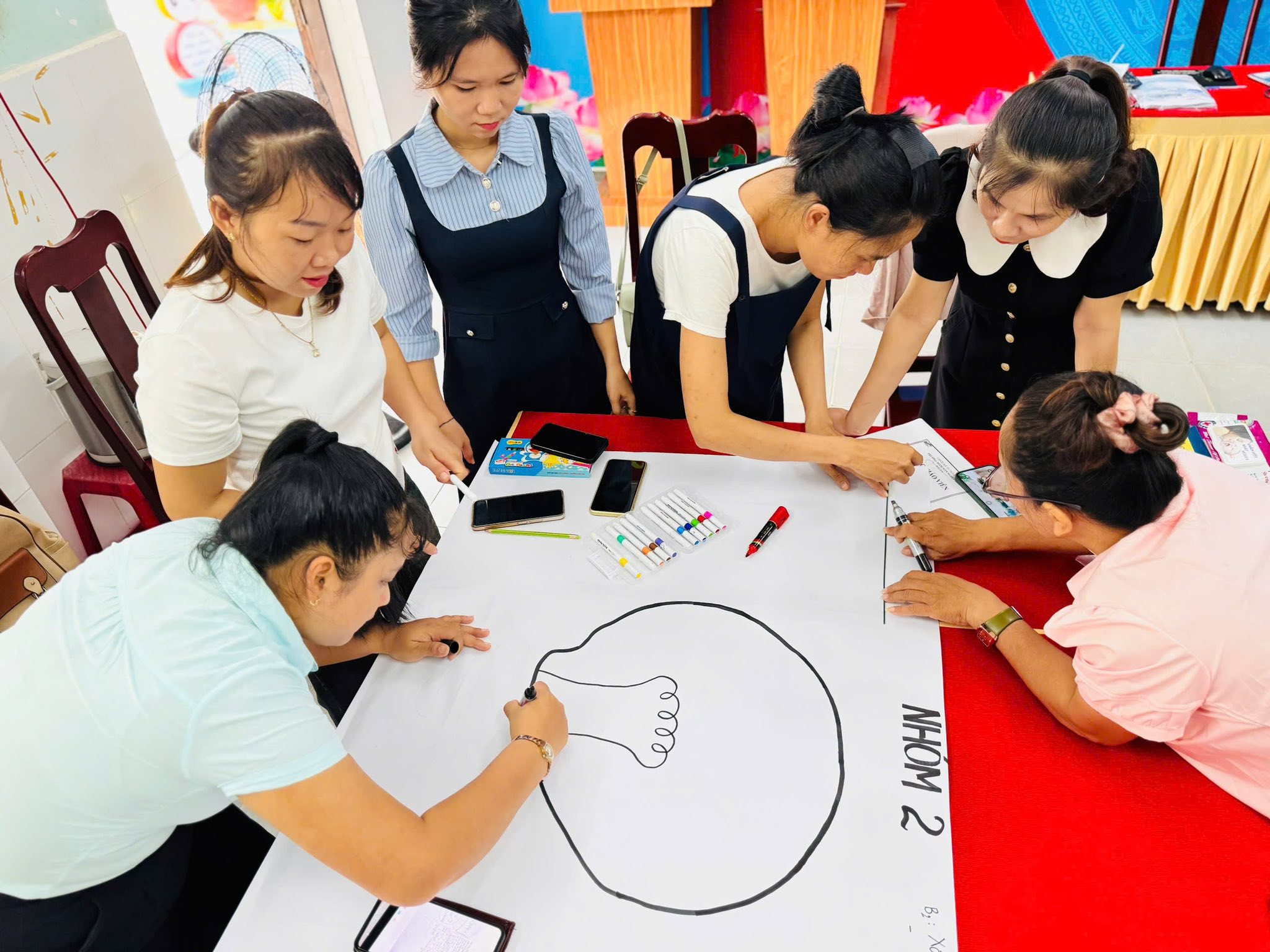Tại buổi tập huấn, các giáo viên tích cực tham gia, chia sẻ nhiều kinh nghiệm quý trong thực tiễn giảng dạy.