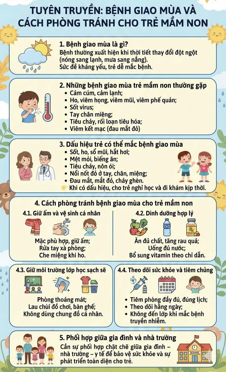 TUYÊN TRUYỀN: BỆNH GIAO MÙA VÀ CÁCH PHÒNG TRÁNH CHO TRẺ MẦM NON